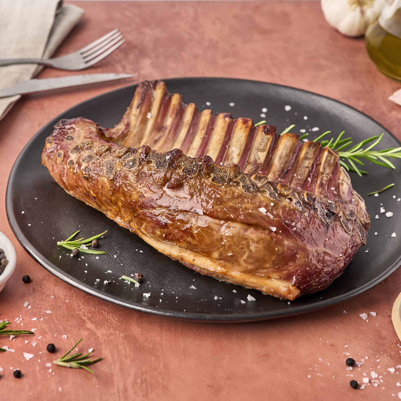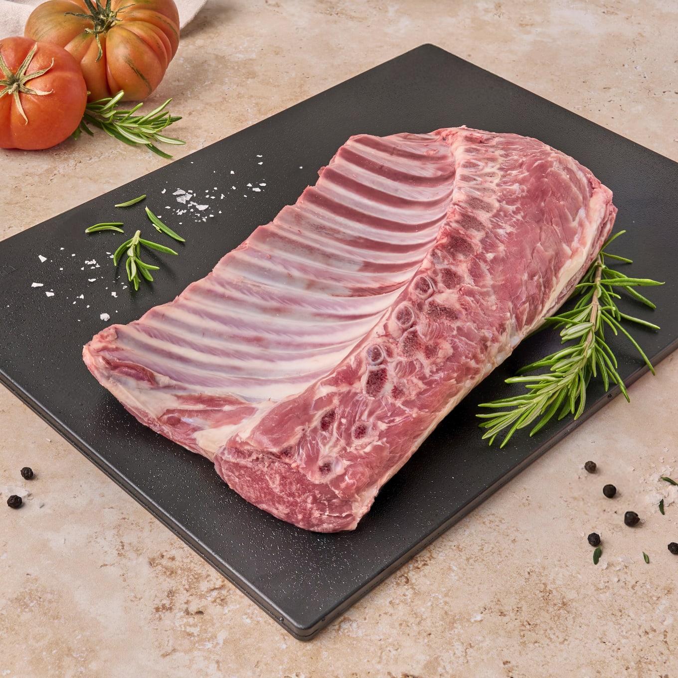 Spanish lamb is known for its exceptional tenderness and refined flavor. This impressive 13-rib rack makes a stunning centerpiece, whether roasted whole for carving at the table or sliced into chops for grilling over charcoal. Its melt-in-your-mouth texture and mild taste are sure to impress.