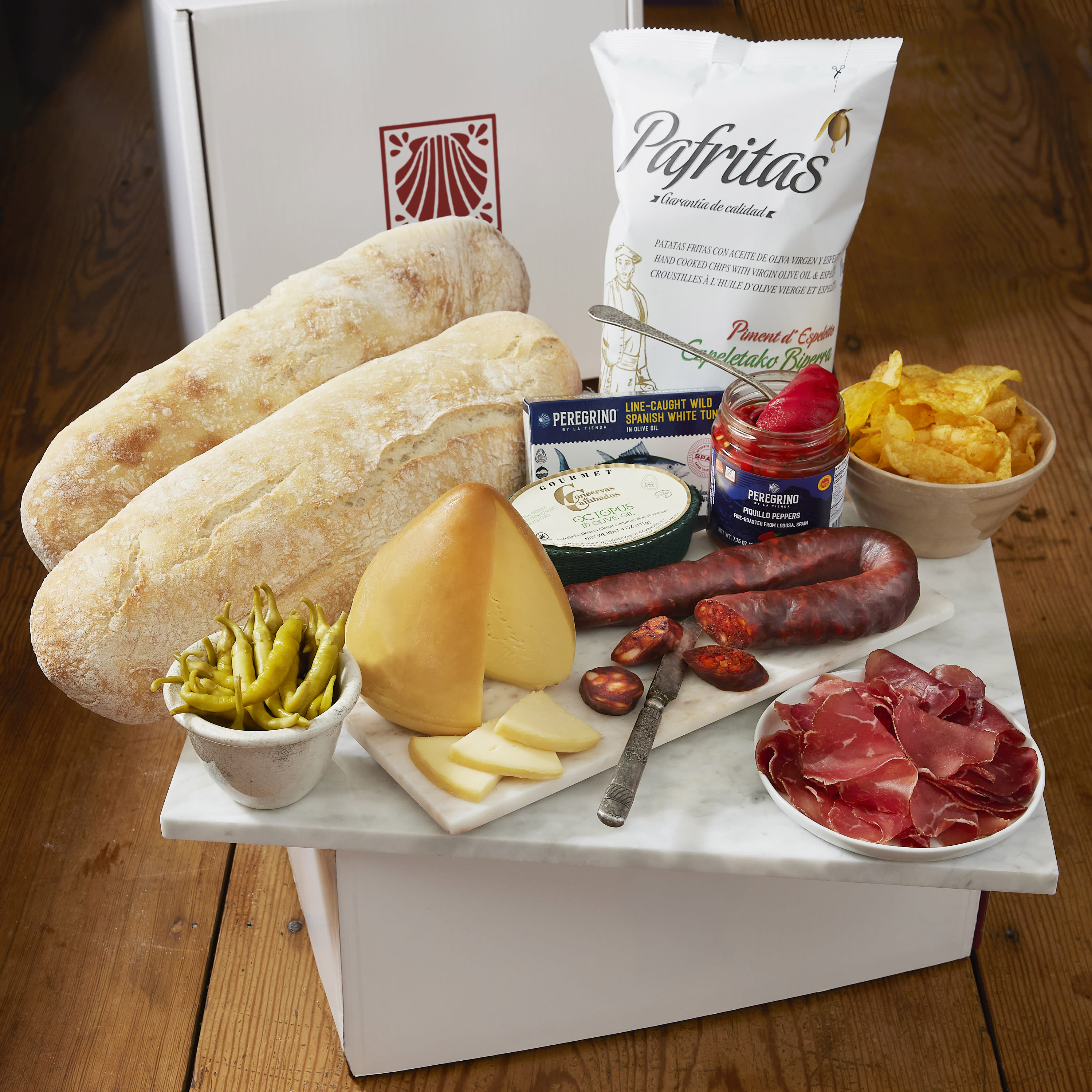 Next we include a whole San Simón cheese, a mild cow’s milk cheese smoked over beechwood, plus two loaves of Barra Cantabrica, a light, airy loaf of bread baked in Galicia, ready to serve hot out of the oven in just a few minutes!