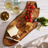 Note: the olive wood board will vary from the photo in shape and appearance. Boards include natural bark and may have natural indentations and knots.