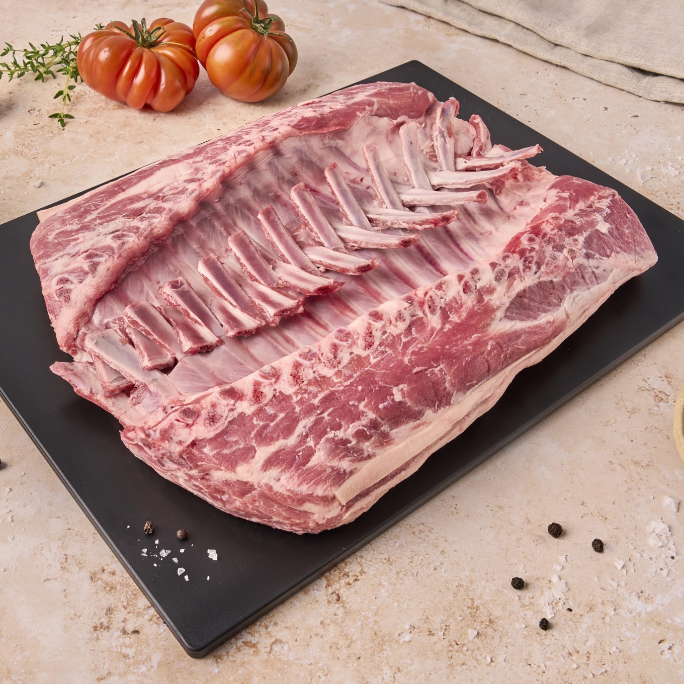 These two full lamb racks are expertly Frenched, with the bones carefully trimmed for an elegant presentation. As they roast, the exterior caramelizes to a golden crisp, while the meat inside stays tender, juicy and flavorful.