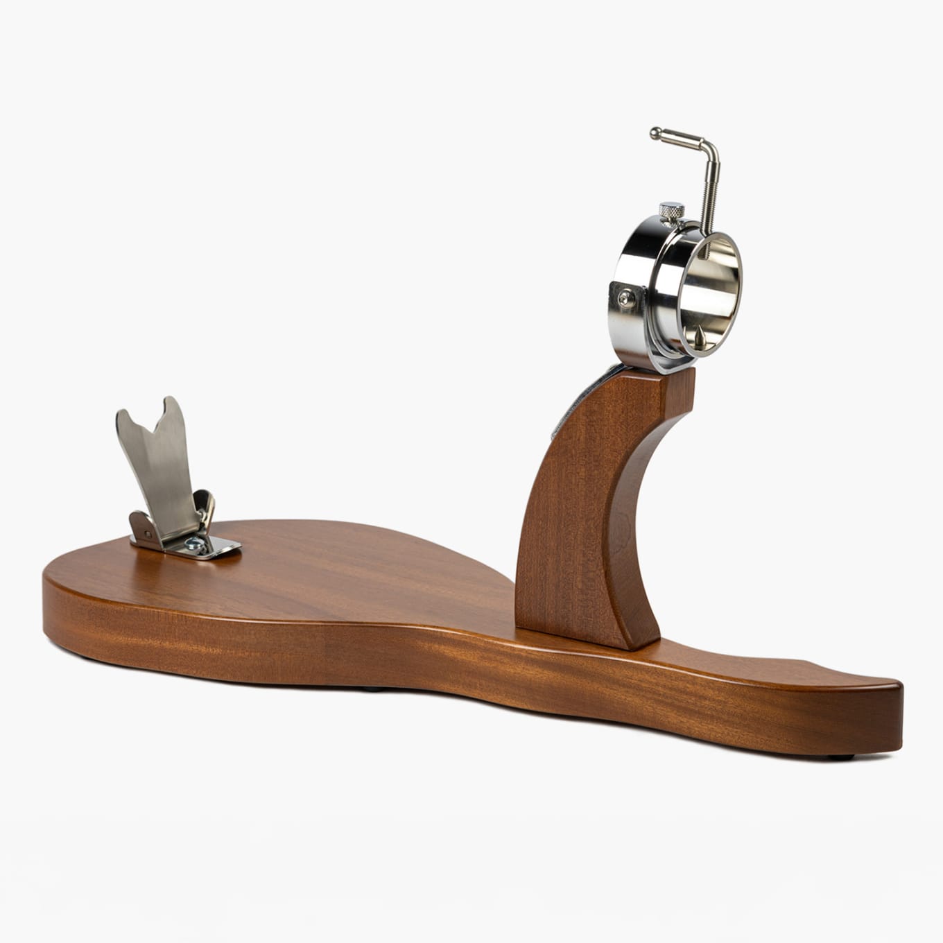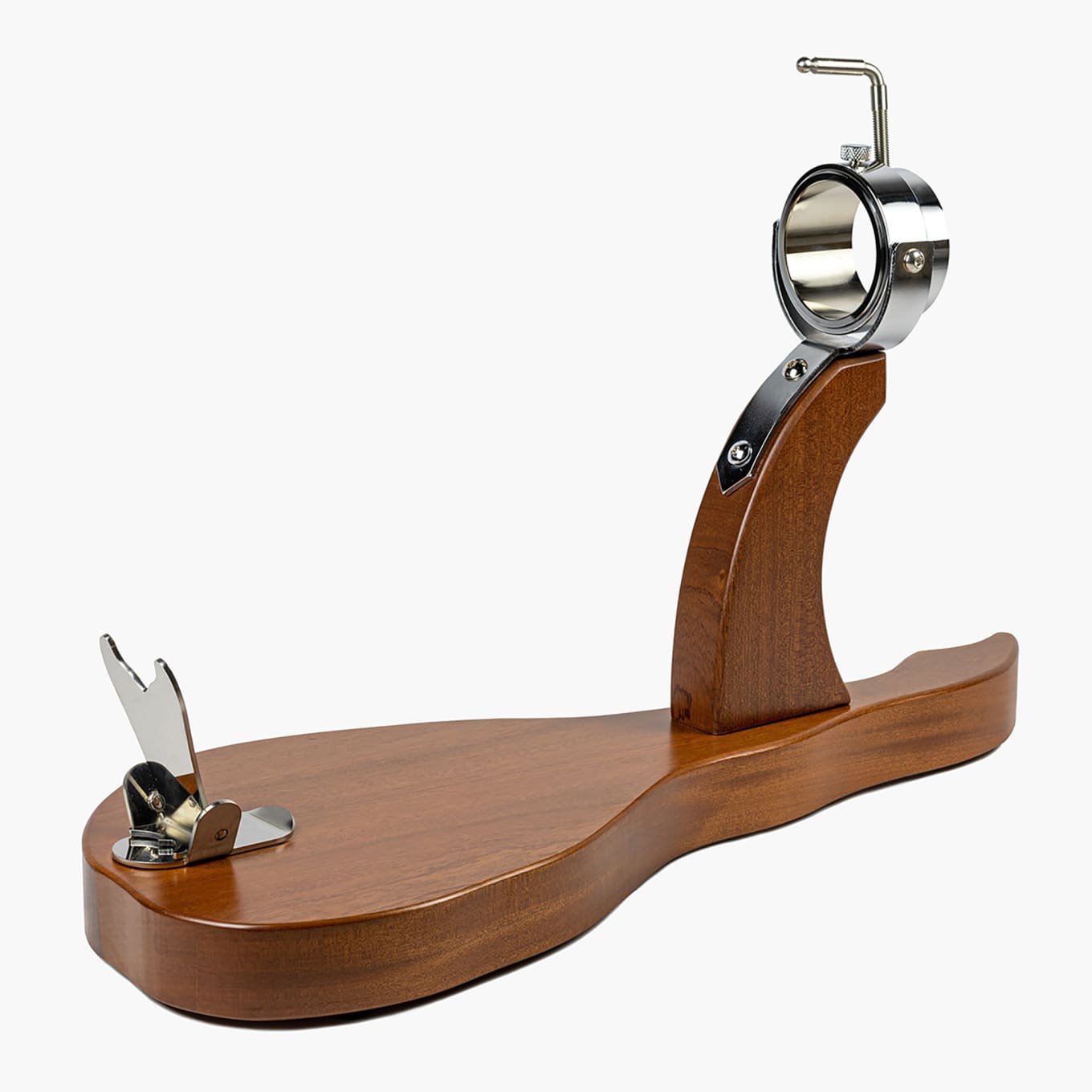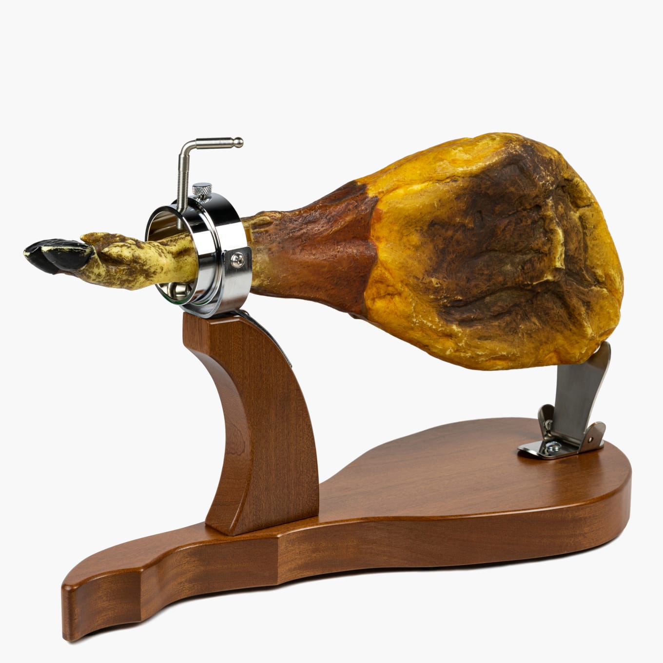 Present your ham in style with this elegant Gala holder. This jamonero is made of solid hardwood and sparkling stainless hardware. The beautifully engineered ham grip rotates, allowing you to reposition your jamón with ease.