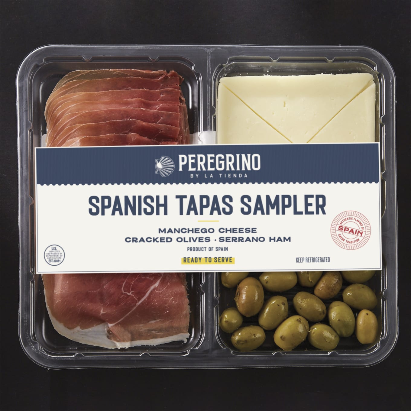 We have included bite-sized slices of jamón, wedges of aged Manchego cheese and cracked Verdial olives with pits, marinated in garlic and herbs. Two to four people can enjoy a nice tasting of tapas from each tray. The tapas are sealed in separate compartments to maintain their authentic flavors and freshness.