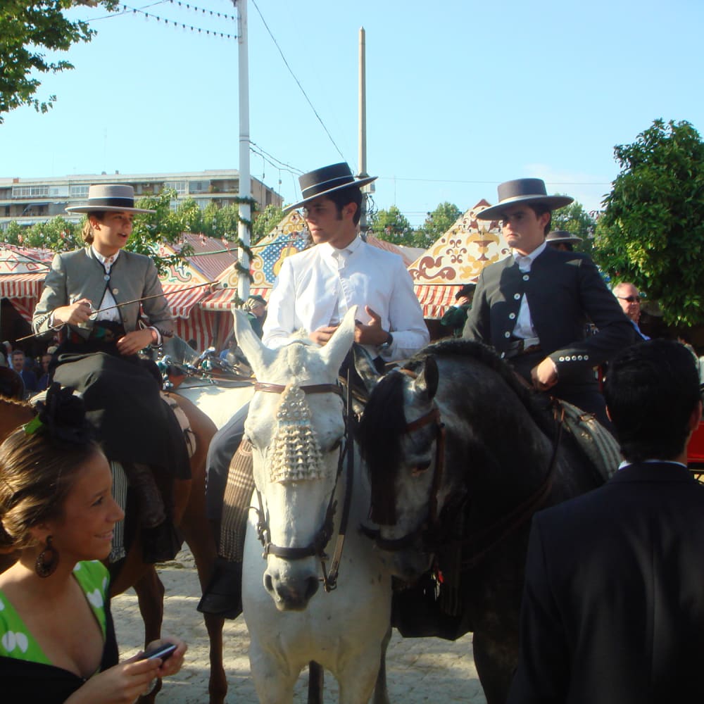 They were a part of the El Rocío pilgrimage, in which each year up to a million ordinary people, as well as gypsies in colorful carts, converge on the remote town of El Rocío. They sing and dance, flamenco songs fill the air -- all leading up to the climactic moment when the 'La Paloma' (the Dove) -- the White Virgin emerges from the church. Some women break into tears and sing mournful saetas; others hold their infants and little children up to touch the Virgin so that they may be blessed by her presence.