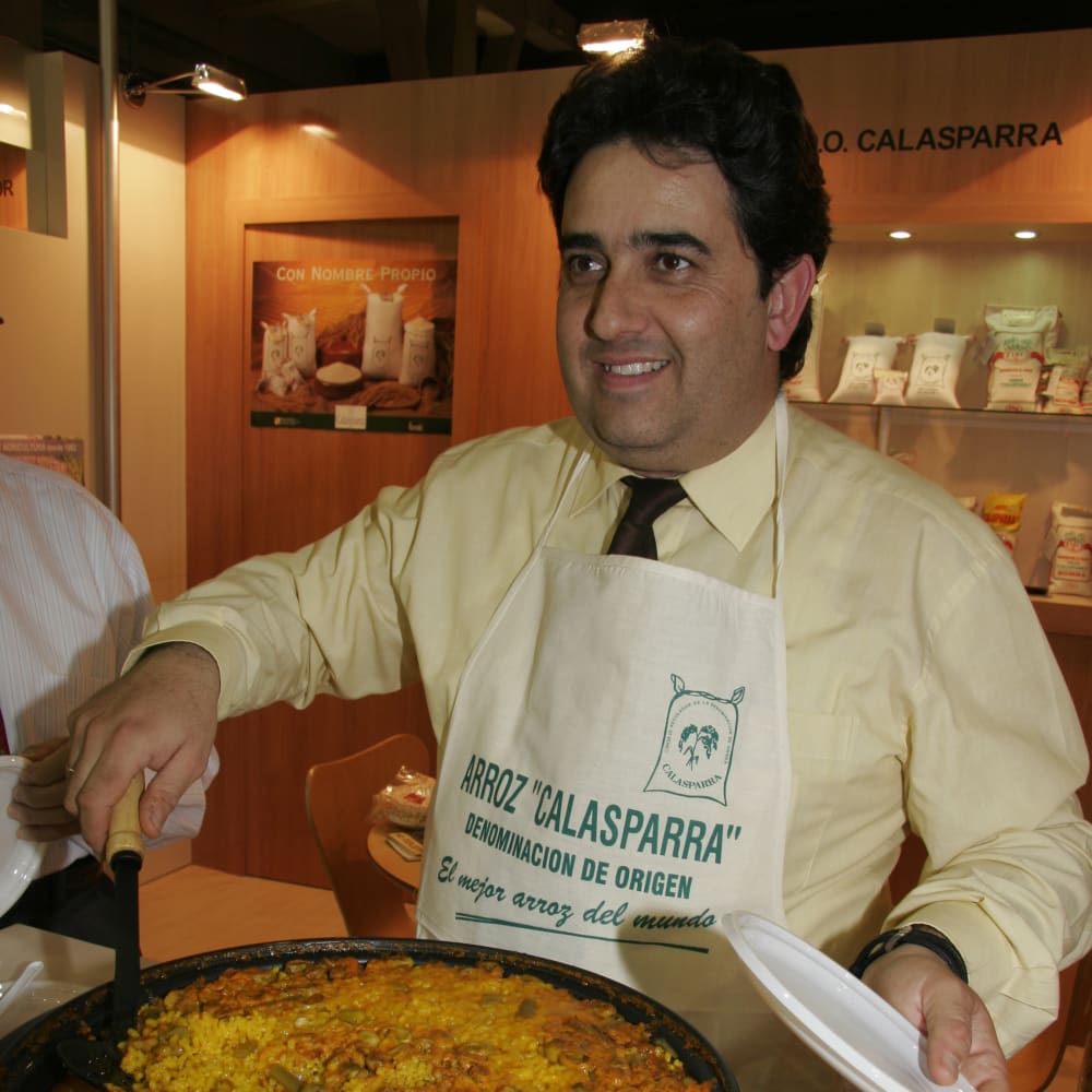 Pepe is a man of the countryside of Murcia, with strong rustic features, dancing eyes and a jovial smile. Should you attend any of the major food expositions in Spain, probably you will see him, with a glass of wine in one hand and a spatula in the other presiding over four paellas simmering simultaneously at his cooperative's booth. That is, if there is not a traffic jam in front of his stand.