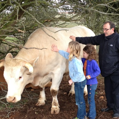 Actually, it is a fairly recent trend to feature ‘buey’ as popular restaurant fare. Historically oxen were a valuable part of farming, pulling plows across the fields and carts of grain and hay during the harvest. Only after their useful working lives, often well over ten years of age, were they sacrificed and eaten – thus the origin of this culinary tradition. As farming became mechanized, oxen began to disappear from the countryside. Only recently was the tradition revived and expanded. Now oxen are raised expressly for their meat – we actually visited a couple of these massive beasts after a meal at the famous El Capricho restaurant near Astorga – I have a photo of my daughters Anna Bell and Sarah patting one of them! The popularity of buey has grown so much that there are not enough oxen, and older cows are also hitting the menu – care for a plate of vaca vieja?