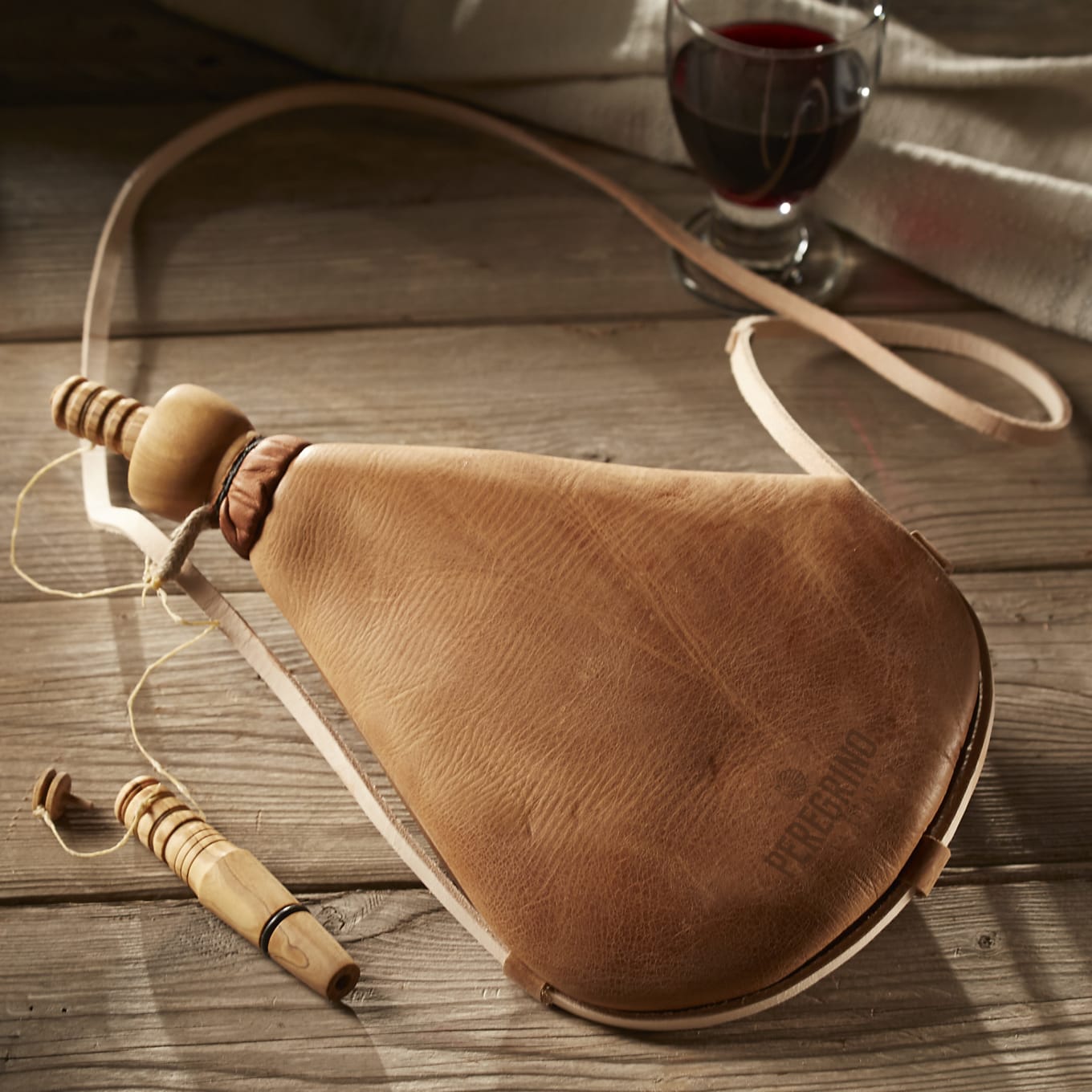 Our brand, Peregrino, means pilgrim in Spanish. Many of the pilgrims walking the road to Santiago de Compostela in northern Spain would carry a bota with them to refresh themselves and friends during their long journey. This latex lined version is particularly helpful since it can carry wine or water, depending on your preference.
