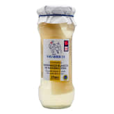 This white asparagus is so spectacularly huge that each jar holds only one spear! Hand-harvested in Navarra, this giant size is so rare we only get a small number every year. Delicate and tender, white asparagus is usually served chilled with a dollop of mayonnaise or as a special addition to salads.