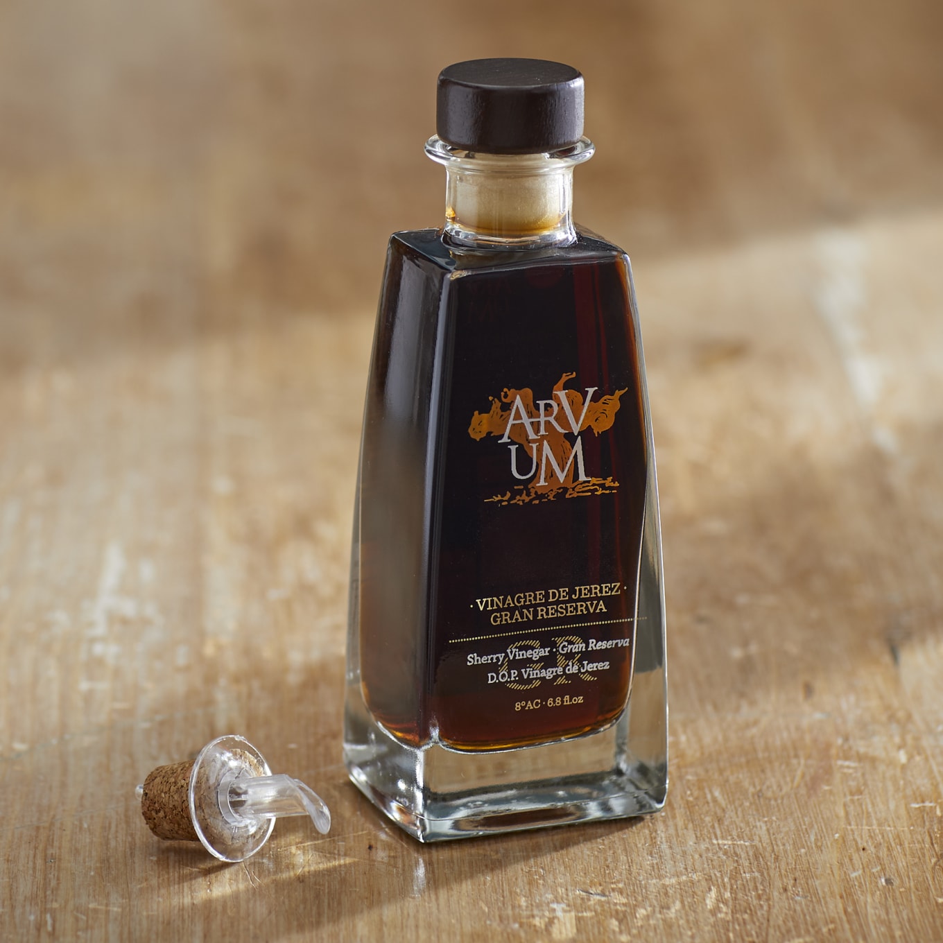 Arvum Gran Reserva Sherry Vinegar shares its name with the sherry wines made with similar techniques. It’s made using the traditional Solera system pioneered in Spain, in which some of the vinegar is transferred in the solera, or set of barrels of different ages, some more than 40 years old. The result of this maturation in barrels is remarkable flavor: piquant yet smooth, bold and lasting.