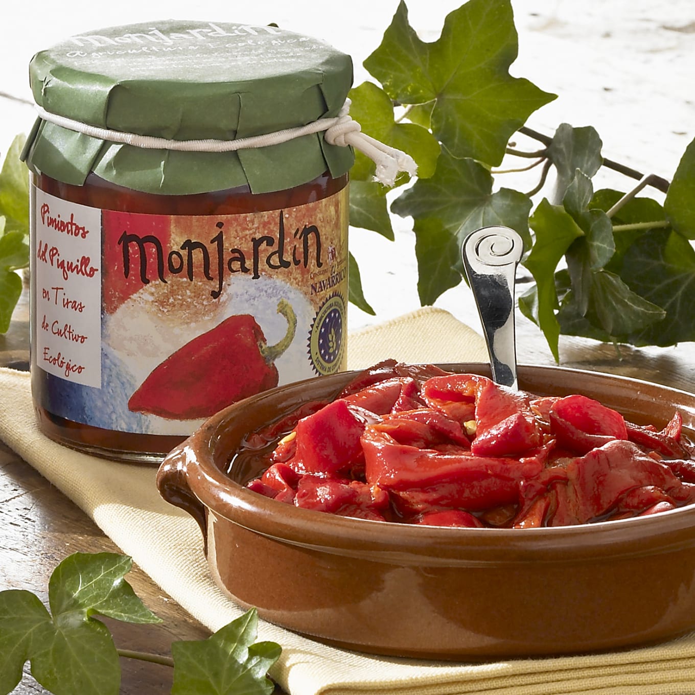 Monjardín is an organic line of vegetables from El Navarrico, an artisan brand that has been a La Tienda favorite for years. Certified organic Monjardín piquillo peppers are grown in Navarra, a region in northern Spain known for its extraordinary produce, without the use of fertilizers or chemical additives. No artificial ingredients or chemicals are used in the washing, roasting or peeling process.