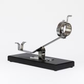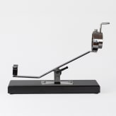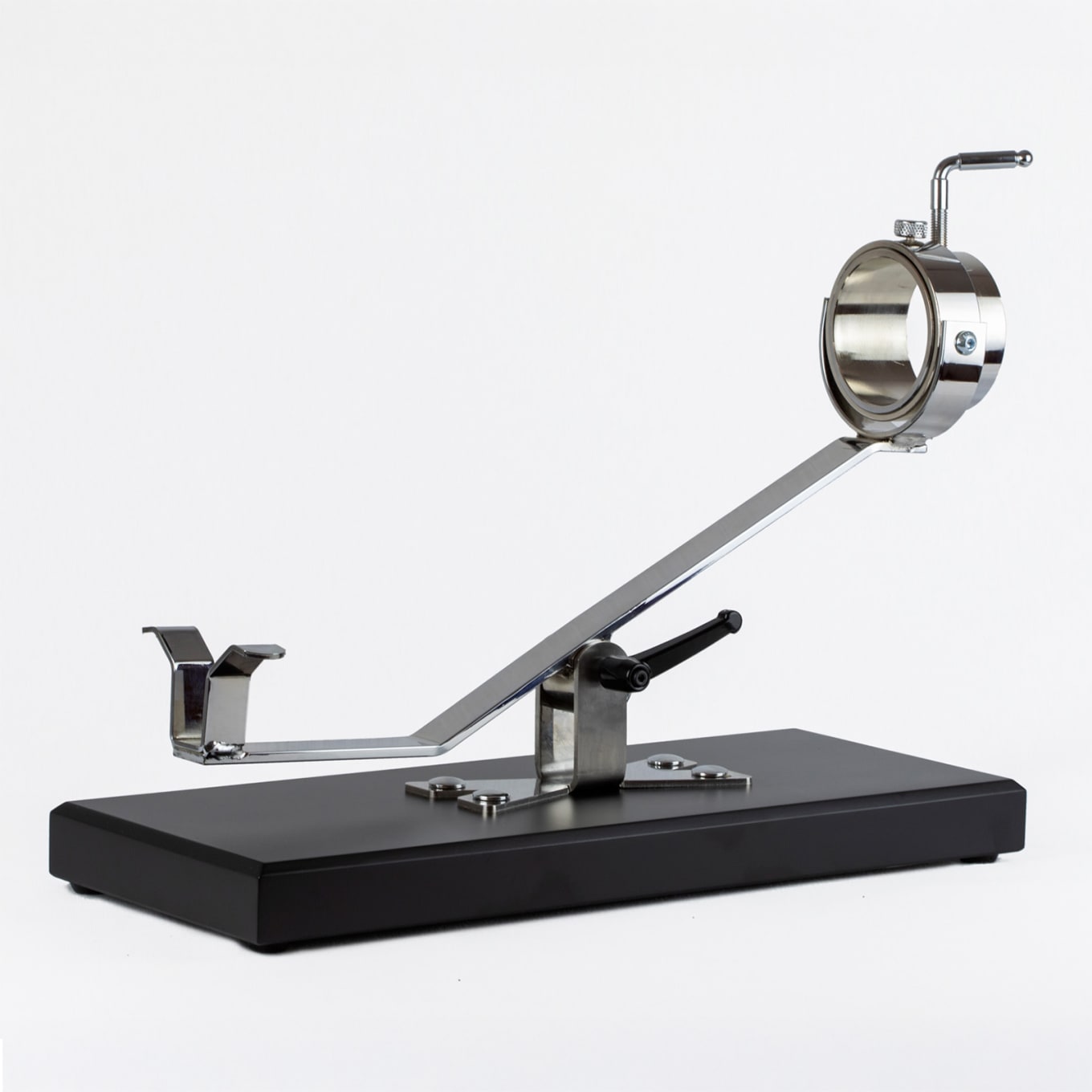 This sleek, professional quality ham holder presents Spain's exceptional hams in style. Made of polished stainless steel, it features a tilting base and a rotating swivel grip so you can easily access every last slice of jamón. Mounted on a thick, durable polyethylene base, this ham holder is sturdy and easy to clean.
