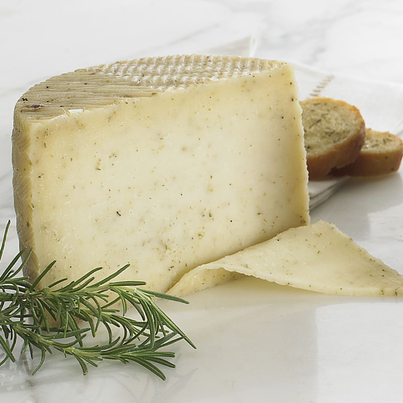 This delicious cheese is flecked with rosemary leaves, adding a unique twist to a classic flavor. Made from the same sheep's milk as the famous Manchego cheese, the only difference is the addition of rosemary. Aged for about 4 months, it has a similar flavor profile to a mild, young Manchego with the additional taste of rosemary that evokes the countryside of La Mancha.