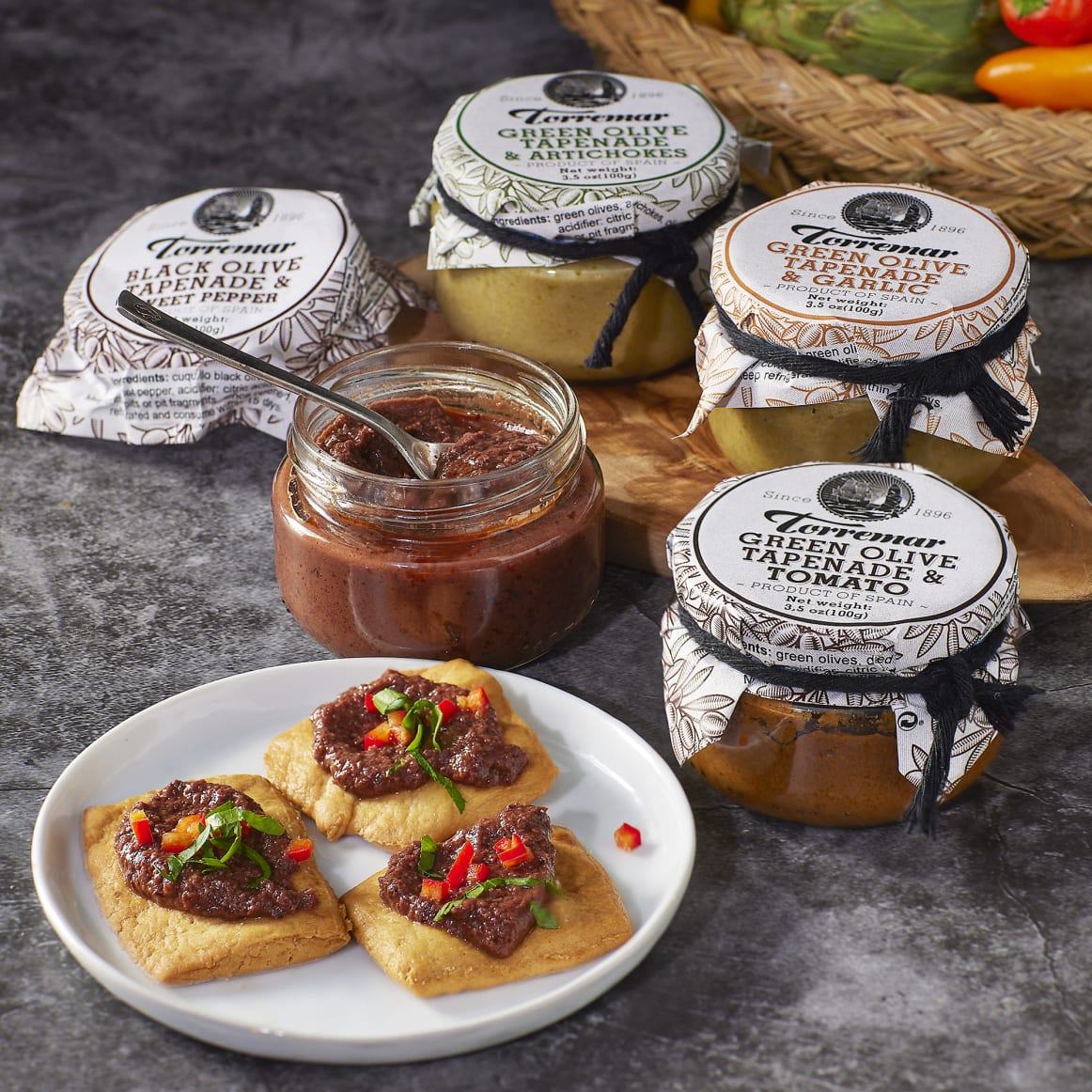 Spread the love with these savory olive tapenades! Our rich, flavorful tapenades are a delicious blend of premium Spanish olives and enticing flavors, like artichoke hearts, sweet red peppers and briny capers.